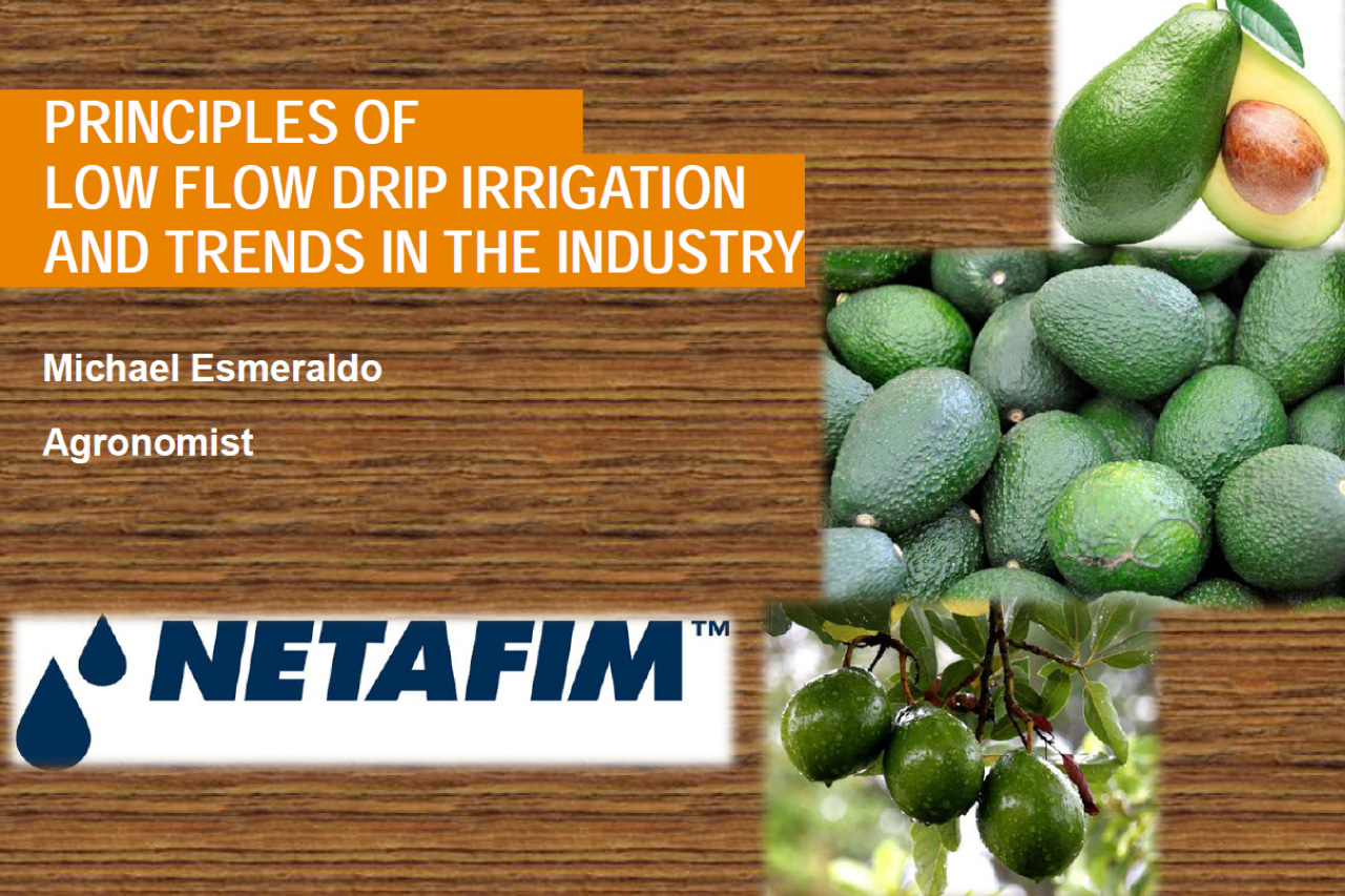 Presentation topic: PRINCIPLES AND PRACTICES OF DRIP IRRIGATION. Date: 9 March 2016. Location: Maluma day 2016 – Merensky High School. Presenter(s): Michael Esmeraldo – Netafim. File Size: 10.8 MB See presentation