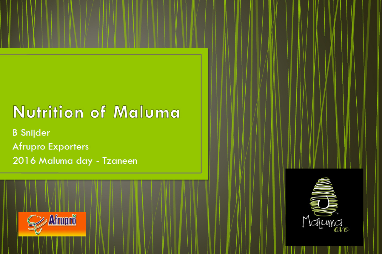 Presentation topic: FERTILIZER REQUIREMENTS OF MALUMA: A CASE STUDY. Date: 9 March 2016. Location: Maluma day 2016 – Merensky High School. Presenter(s): Bram Snijder – Afrupro Exporters. File Size: 7.4 MB See presentation