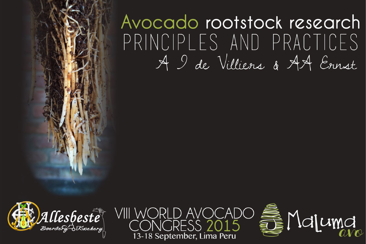 Presentation topic: Avocado rootstock research- principles and practices. Date: 13 – 18 September 2015 Location: Werelkongres – Peru. Presenter(s): Abraham de Villiers. File Size: 5.6 MB See presentation