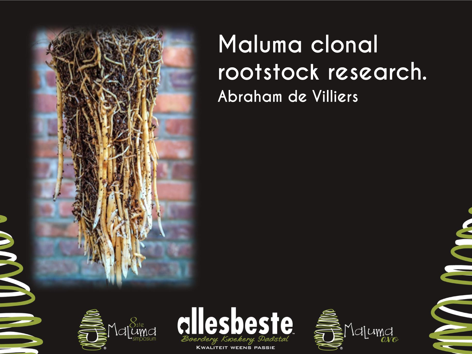 Presentation topic: Maluma clonal rootstock research. Date: 7 March 2018. Location: Maluma symposium 2018 – Merensky High School. Presenter(s): A de Villiers – Allesbeste. File Size: 5.4 MB See presentation