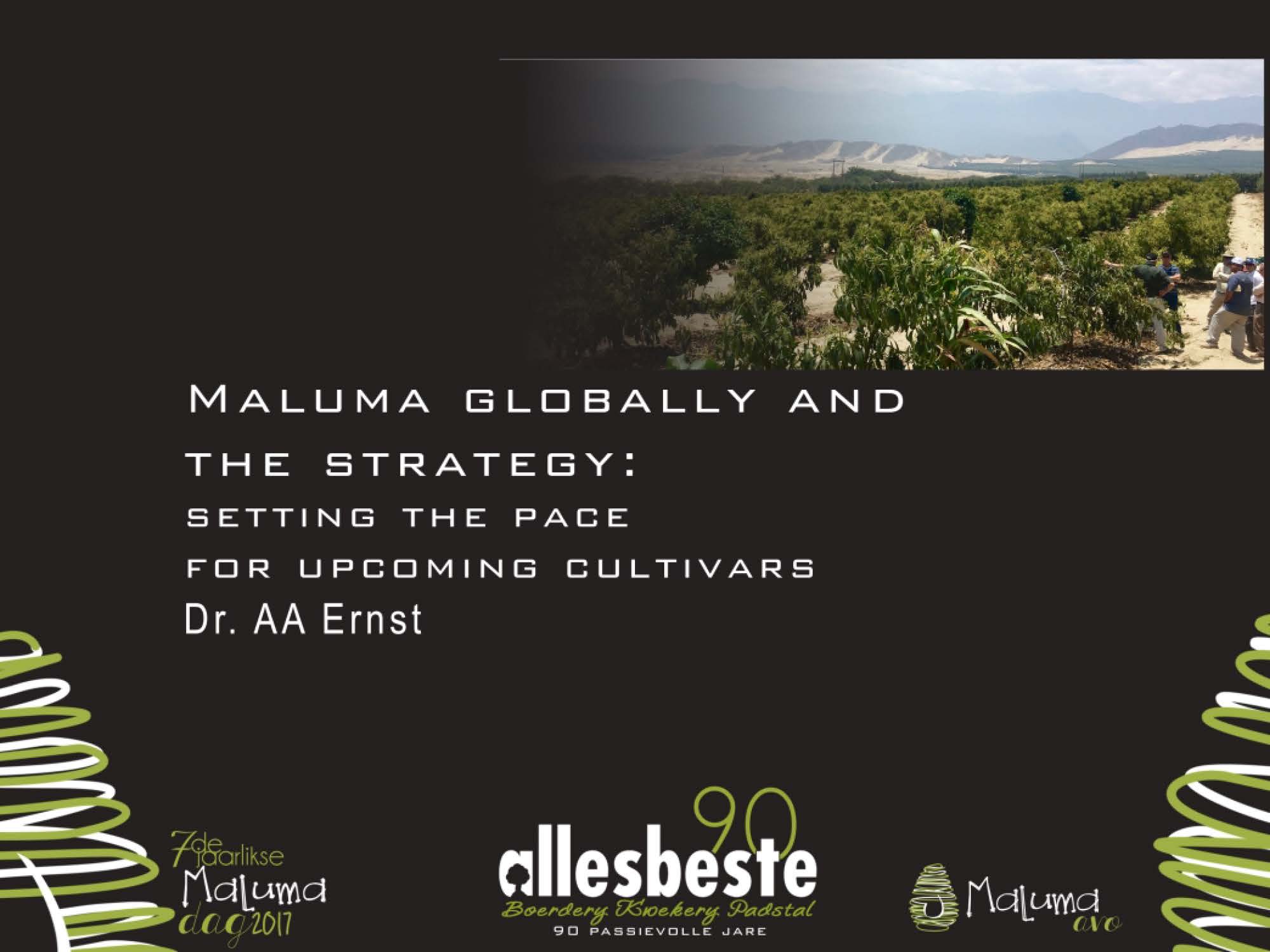Presentation topic: Establishing new cultivars and the value of the Maluma brand. Date: 8 March 2016. Location: Maluma day 2017 – Merensky High School. Presenter(s): ZR Ernst – Allesbeste. File Size: 2.2 MB See presentation